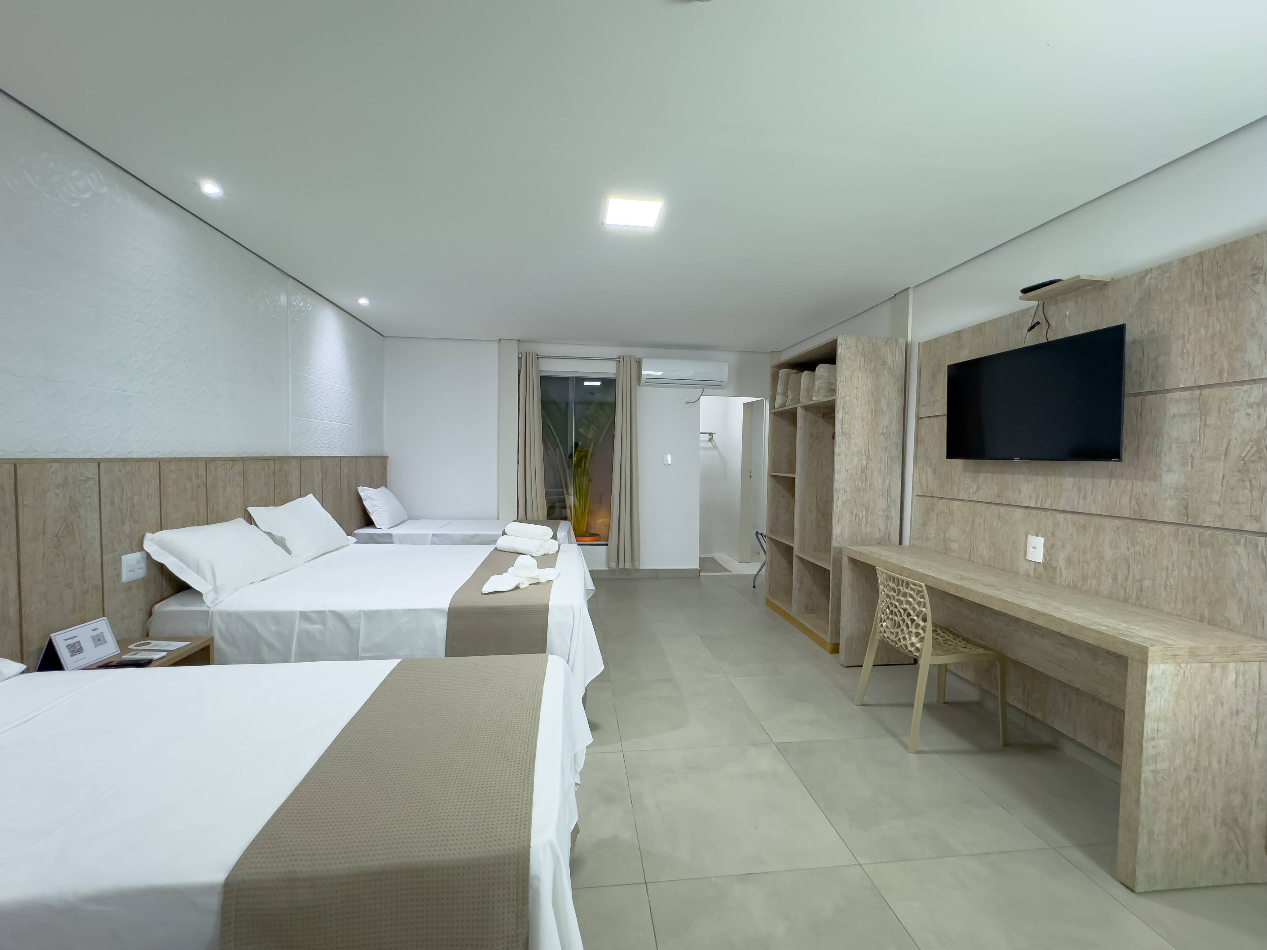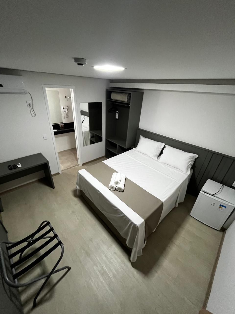 Dispõe 1 cama queen, wi-fi gratuito, ar-condicionado, frigobar, TV smart, banheiro privativo, roupeiro, secador de cabelo, kit de higiene pessoal, roupas de cama e toalhas.